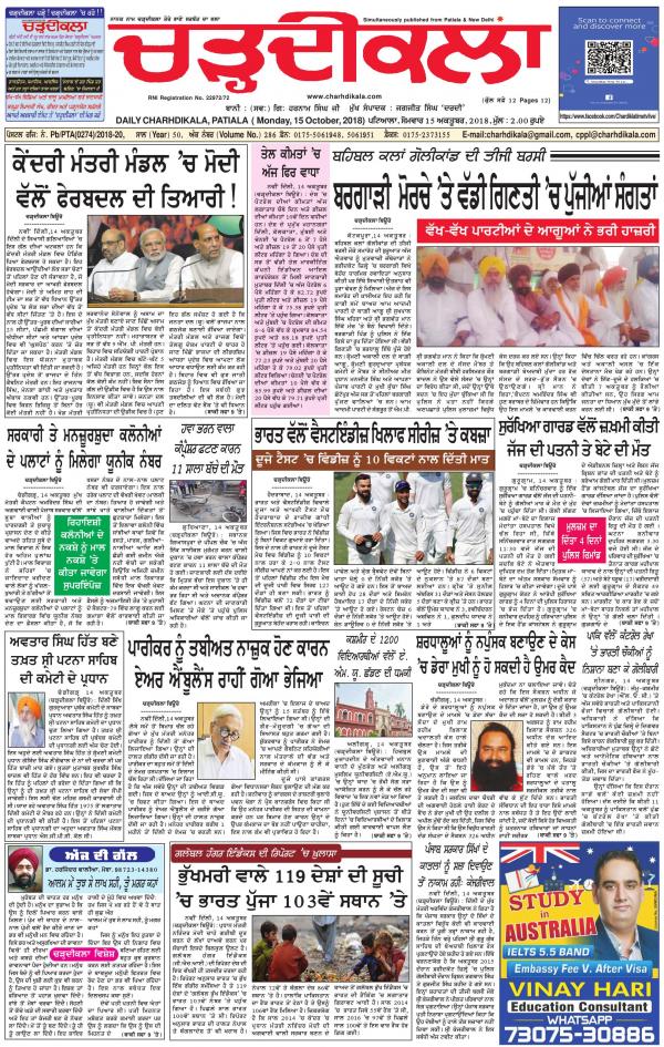 Charhdikala Newspaper Punjab 01 01 70 Newspaper In Punjabi By Chardikla Punjabi Newspaper Read On Mobile Tablets - 09.00 am to 06.00 pm (except sunday and gazetted holidays).