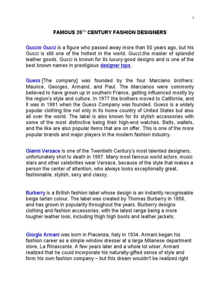 Famous Fashion Designers Names Famous Fashion Designers Names / After the murder of gianni in 1997, donatella took over and has taken the versace name to new heights.