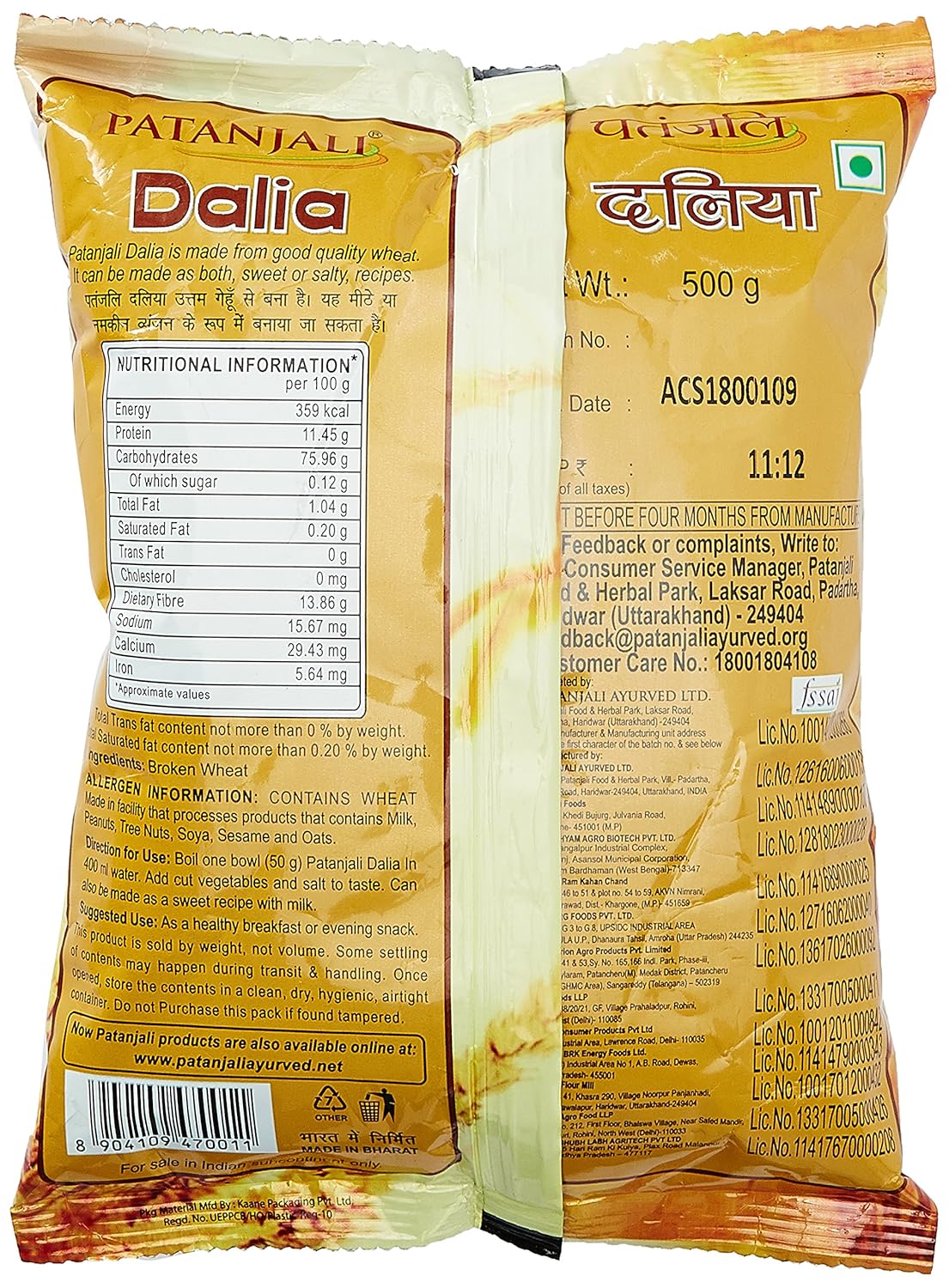 Patanjali Dalia Price